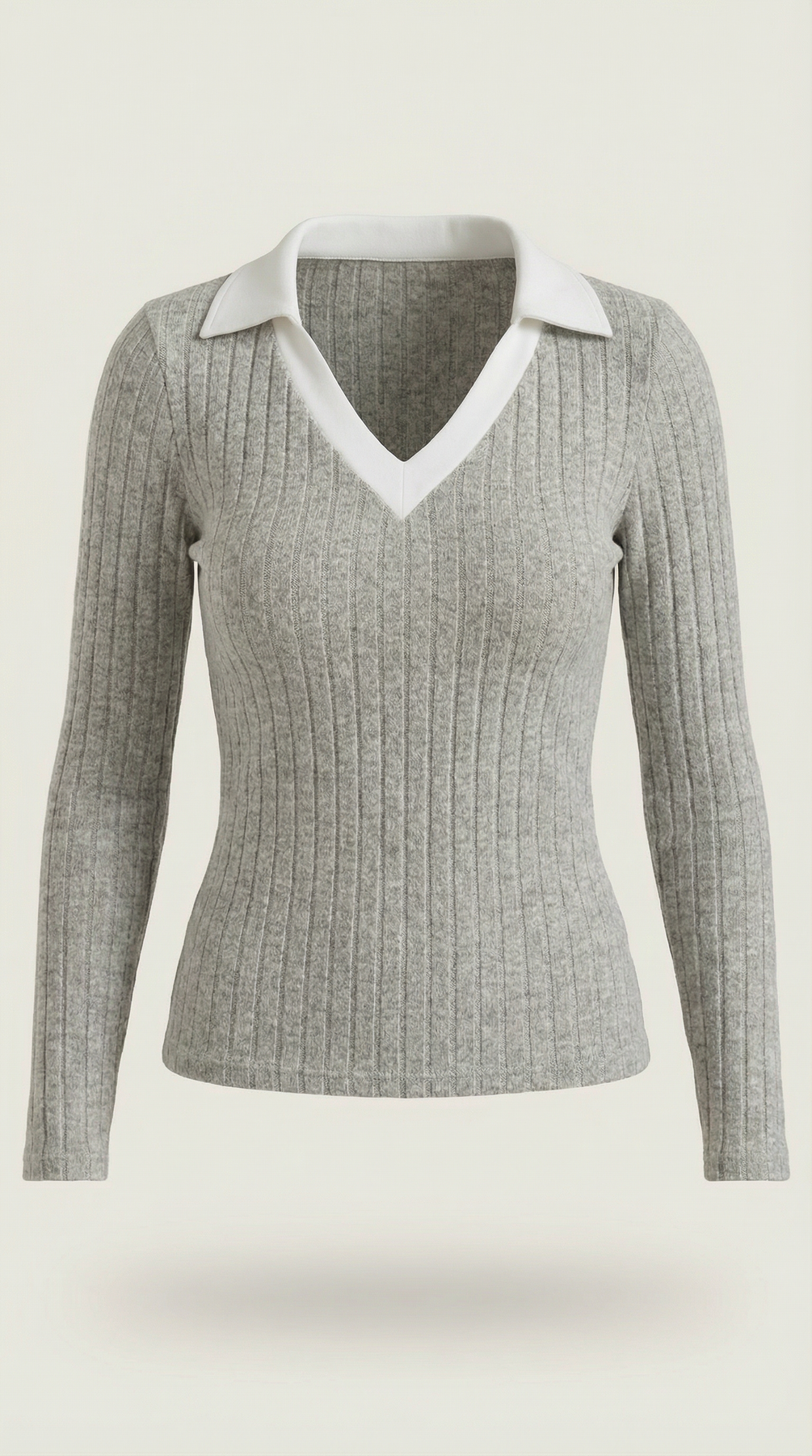 - Striking white collar and v-neck for that perfect preppy-meets-modern moment