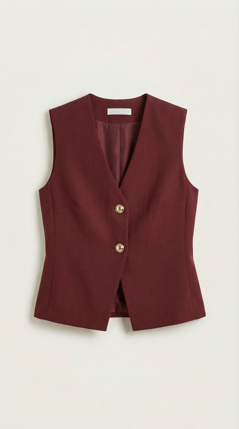 The 'Lily' vest is tailored sophistication refined. This rich jewel-toned piece features a plunging neckline and asymmetric hem, while polished gold buttons add luxurious contrast. The streamlined silhouette and minimalist design prove that simplicity creates the most powerful statement.