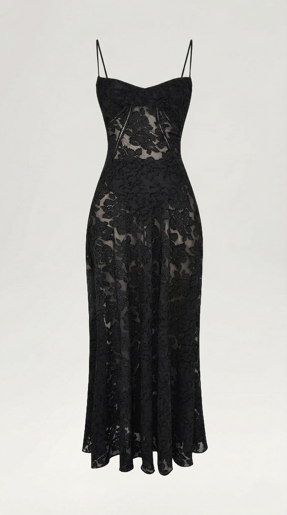 The 'Arabelle Lace Maxi Dress' is bridal elegance reimagined - that breathtaking piece that makes you look like pure sophistication whether you're walking down the aisle or captivating everyone at an elegant celebration. This stunning gown features a sweetheart neckline with delicate thin straps and architectural seam detailing in exquisite floral jacquard.
